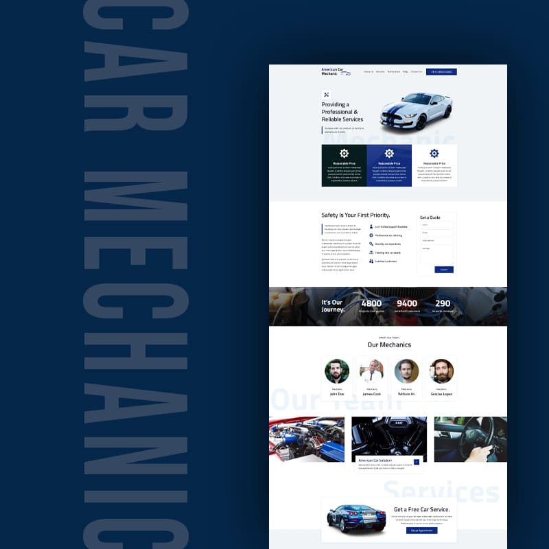 A perfect solution for the Auto Mechanic website landing page, It contains everything that an Auto Mechanic Landing Page requires- A Modern intro section, eye-catching services, an about section, and many more.